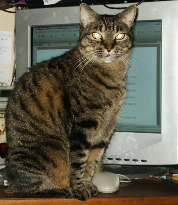 The female, ten year old, eight-pound, house cat had not been eating for about four or five days. When she drank water she would, soon, vomit it up. The vomit was clear, apparently without any digestive juices added. The cat chose to sleep in a secluded part of the basement, which was cooler than the upstairs of the house. Apparently, this was to prevent further dehydration. Normally she liked to be upstairs.