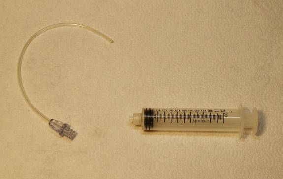 Figure 1.  12 cc syringe and small diameter (3/32 inch diameter) tubing with Lure-Lok
