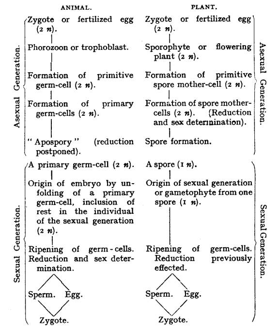 TABLE OF REVISED COMPARISON OF ANIMAL AND PLANT LIFE-CYCLES.